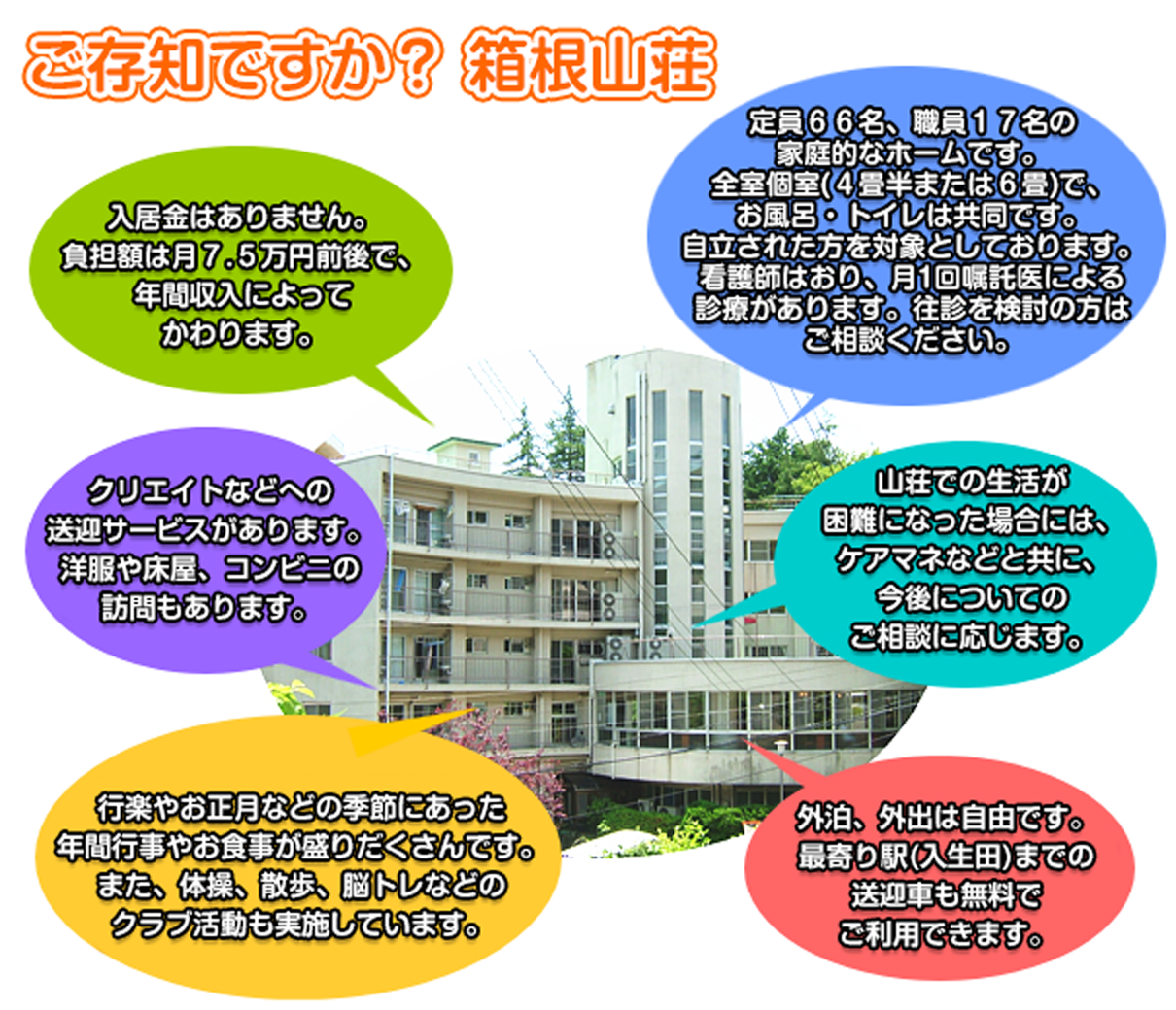 ![]() ご不明な点はお気軽にご相談ください軽費老人ホーム 箱根山荘